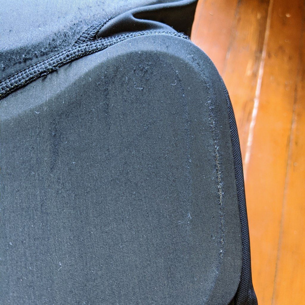 Scuffs around the pad edges, as shorts material is thin